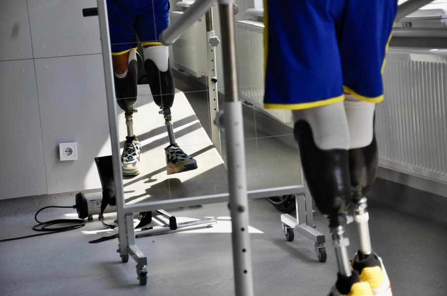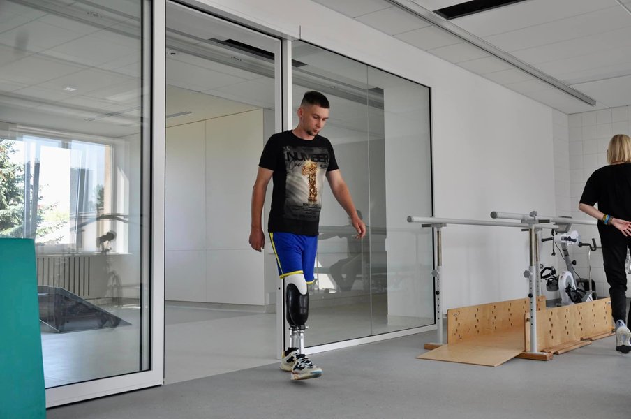 Защитник прошел лечение в Днепре и Киеве, после чего приехал на реабилитацию в центр "Незламні". Сейчас он учится ходить на протезах.