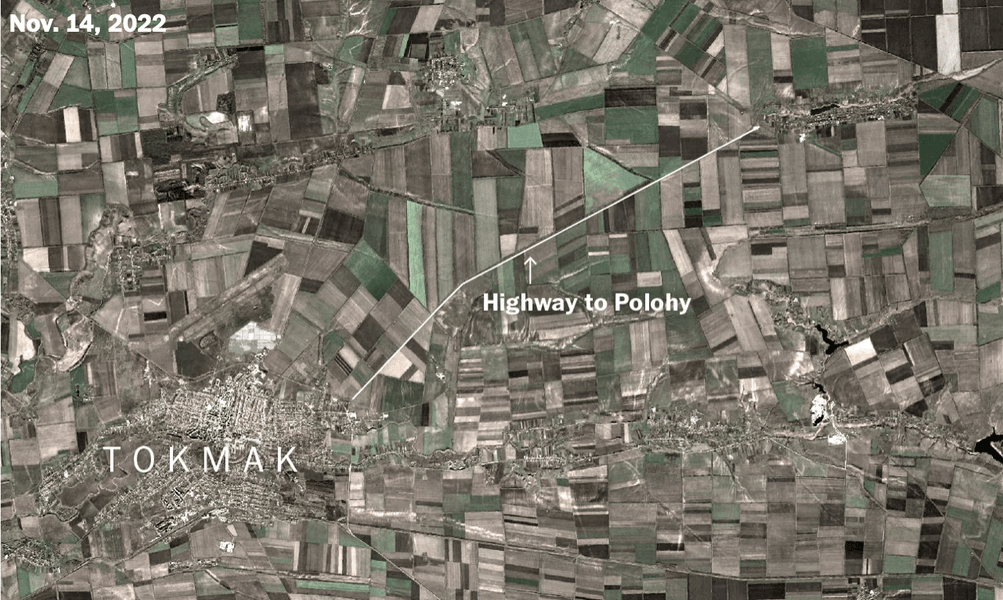 Вдоль 50-километровой трассы между городами Пологи и Токмак в Запорожской области российские оккупанты, по информации спутников, также успели построить укрепления.