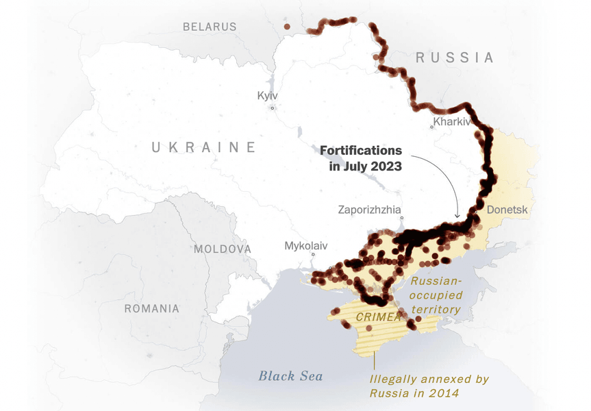 8 декабря прошлого года, когда Украина публично озвучила просьбу, большинство вражеских укреплений были сосредоточены у линии фронта. 6 июля, когда Силы обороны все же получили кассетные снаряды, укрепления уже зафиксировали на территории востока и юга, вдоль границы и в Крыму.
