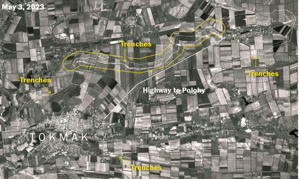 В частности, в городе Токмак в Запорожской области российские оккупанты в течение двух месяцев успели установить заграждения на всех главных дорогах. К моменту поставки в Украину танков, по данным спутников, город был уже окружен укреплениями захватчиков.
