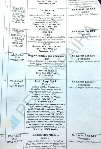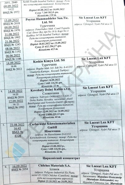 По информации издания, украинская компания в июле, августе и сентябре 2022 года поставила тысячи тонн концентрата венгерской компании Sic Luceat Lux KFT. Ее основателями являются уроженцы Крыма Александр и Светлана Мурадян. Журналисты предполагают, что это могут быть подставные лица.