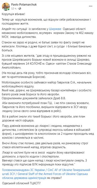 Гибель Бориса прокомментировали в Оперативном командовании "Юг". По словам спикера ОК Натальи Гуменюк, военкомат получил документы, подтверждающие пригодность мужчины к прохождению военной службы.