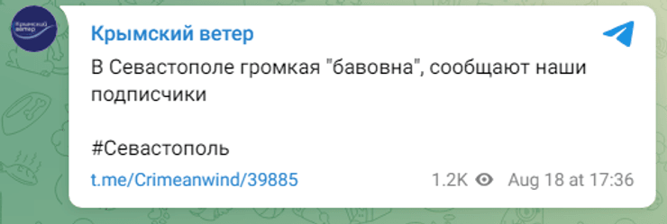 Кроме того, в Telegram-канале "ЧП Севастополь" сообщали о том, что взрывы были слышны также и в пригороде. В частности, громкие звуки слышали в Балаклавском районе. А жители Севастополя сообщали, что от взрыва затряслись окна. Позже в этом канале стали утверждать, что это было плановое уничтожение боеприпаса.