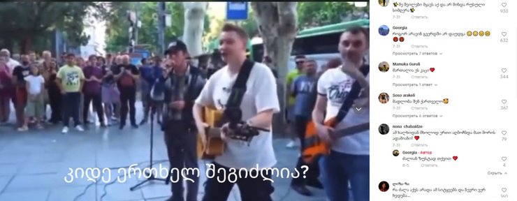 Российский уличный музыкант приехал в Грузию и устроил свое выступление в центре города. Он исполнял российские хиты под гитару, что понравилось не всем.