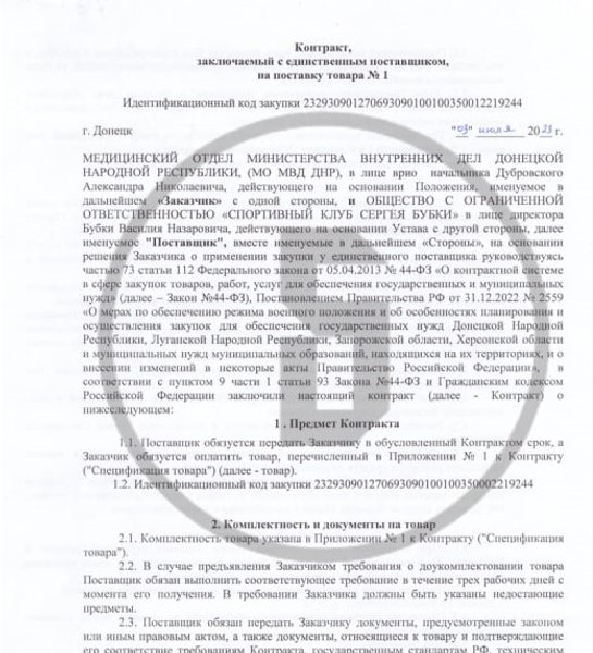 Еще один новый контракт с компанией в РФ, совладельцами которой являются Сергей Бубка и его брат. 3 июля был заключен контракт с так называемым медицинским отделом "министерства внутренних дел" так называемой "ДНР" на сумму 2 тысяч 250 рублей. За эти деньги "Спортивный клуб Сергея Бубки" должен поставить оккупантам резиновые клише для печати.