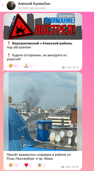 "Ворошиловский и Киевский районы под обстрелом", — написал он.