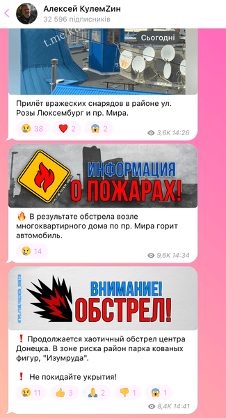 В 14:18 об обстреле сообщил представитель оккупационных властей Донецка Алексей Кулемзин.
