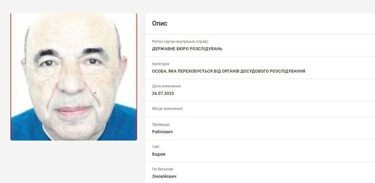 Отмечается, что Рабинович — лицо, которое скрывается от органов досудебного расследования и исчез он 26 июля 2023 года.