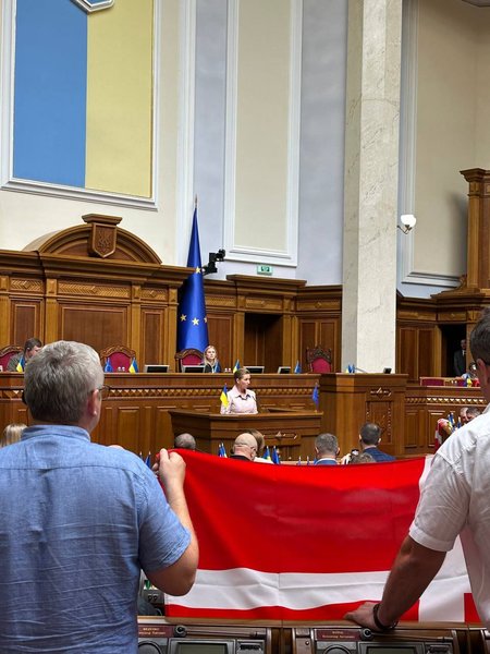 Представительницу Дании украинские депутаты встретили государственным флагом Дании.