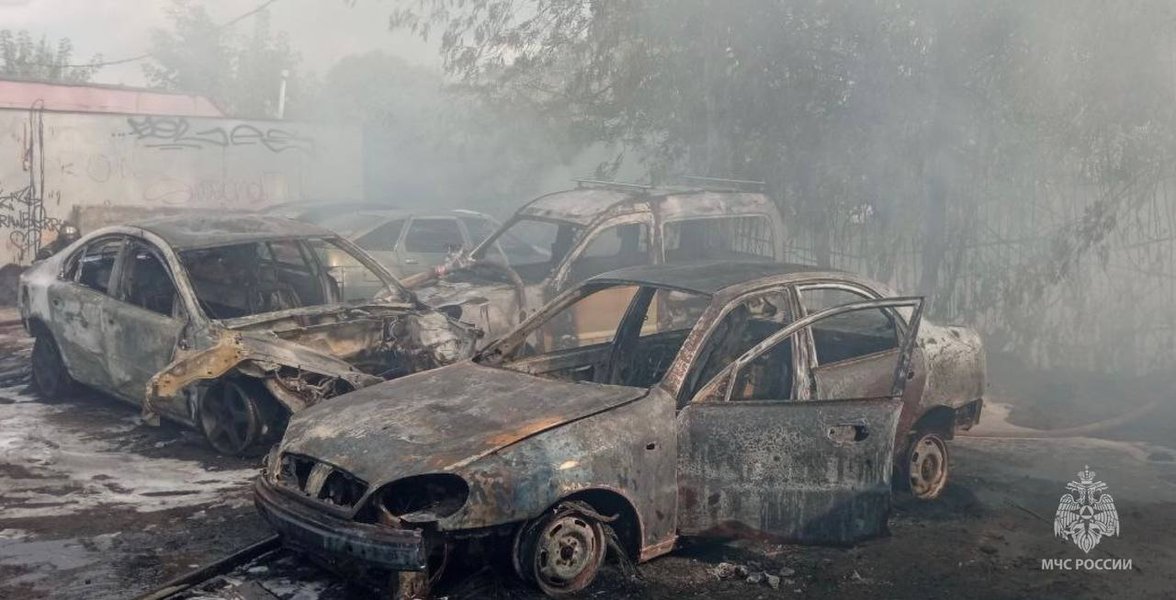 По результатам пожара опубликовали несколько фотографий: видно, что машины выгорели дотла.