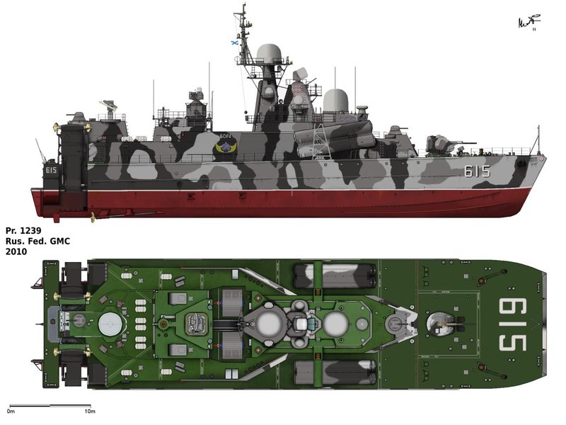 Отметим, "Самум" — корвет типа "Бора" ЧФ РФ или, иначе, малый ракетный корабль, вооруженный противокорабельными ракетами. Физические размеры корабля — длина 66 м. Вооружение — крылатые ракеты "Москит", "Оса", 3 пушки, ПЗРК "Игла", пулеметные установки, гранатометы. Также он оборудован РЭБ и РЛС для охоты на цели.