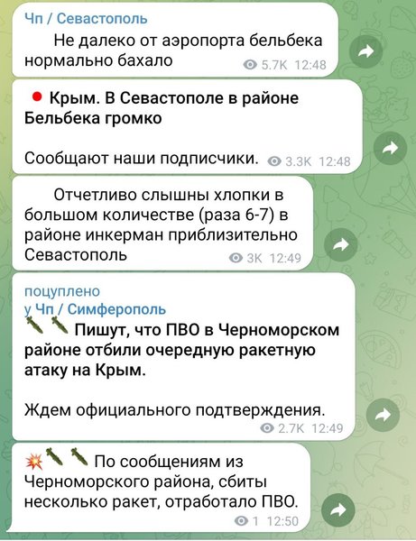 Местные жители между тем в чатах сообщают о громких взрывах в районе аэродрома в Бельбеке.