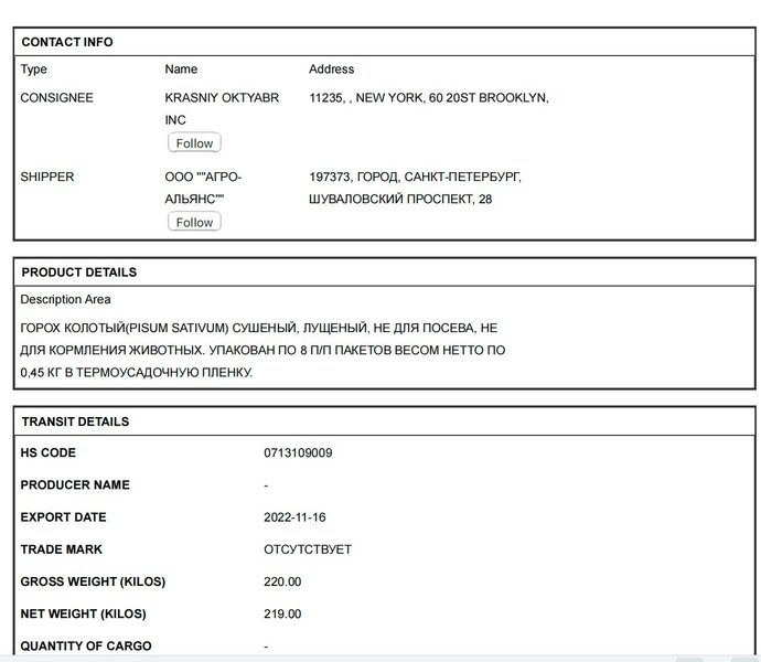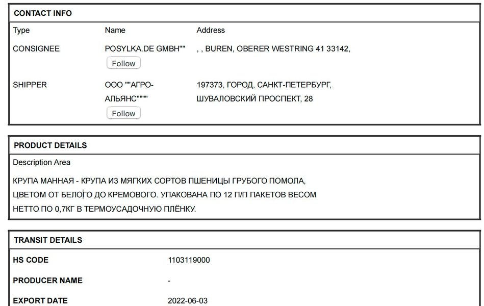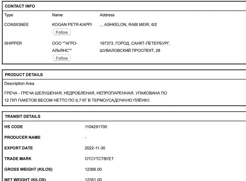 Расследователи напомнили, что семья Нарышкиных является владельцем трети российской компании ООО "Агро-Альянс". Компания представлена на торговых площадках сети "Ашан", которая имеет французского владельца, но до сих пор не ушла из России. В частности, на полках гипермаркета можно увидеть гречку, рис, манку, фасоль и др. продукцию от компании главного разведчика РФ. В то же время эти же наименования обнаружили в пяти странах мира, часть из которых поддерживают Украину и являются членами НАТО.