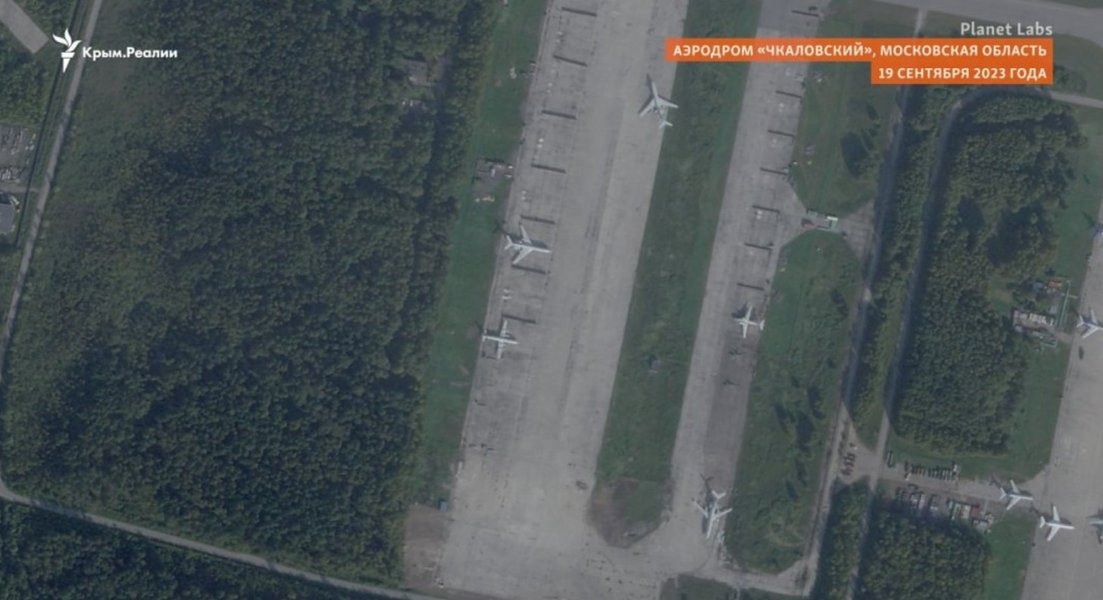 На портале указывают, что раздобыли в неуказанном источнике фотографии аэродрома "Чкаловский", датированные 24 сентября 2023 года. На фотографии хорошо видны три пустые стоянки, где раньше базировались большие транспортные самолеты: их, похоже, оттянули на новое место за пределами поля зрения спутника.
