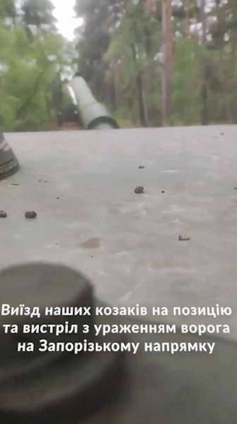 ВажноВ заметке указано, что место событий Запорожское направление, но не указано, какой именно участок. Запись состоит из нескольких частей. Сначала видно, как колонна украинской бронетехники перемещается по грунтовой дороге — указано, что это "выезд наших казаков на позицию". Тем временем боец внутри заряжает танковую пушку.
