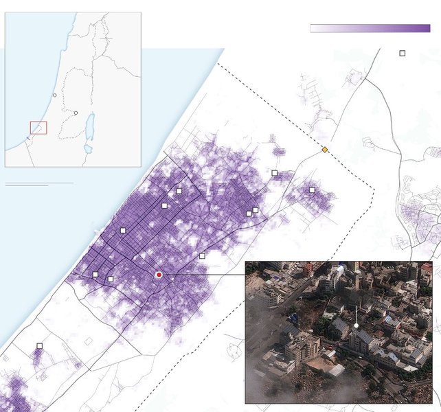 Расследователи также разместили спутниковые фотографии и инфографику местности вокруг больницы. Указывают, что ракету могли запустить с территории кладбища неподалеку от больницы — именно там ранее заметили активность террористов ХАМАС.