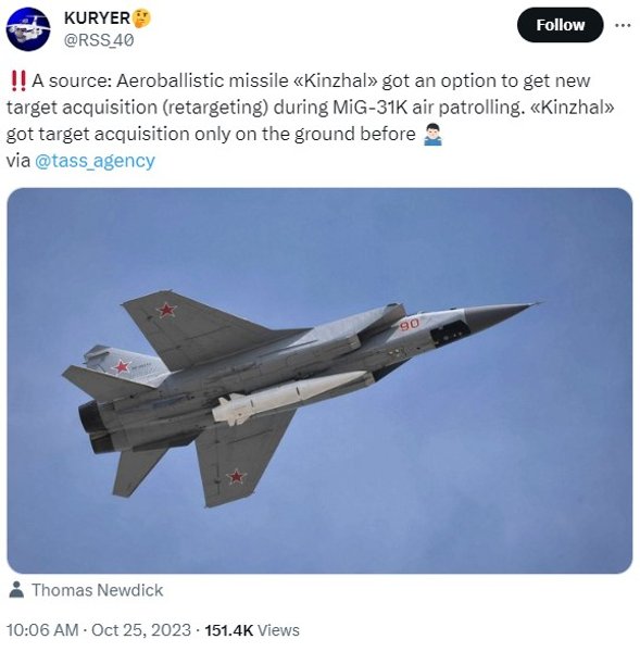 В техническом плане МиГ-31К якобы обладает соответствующими возможностями — он оснащен современными радиолокационными станциями и системами целеуказания, позволяющими получать данные о положении и перемещении цели в режиме реального времени.