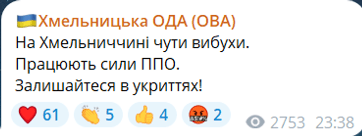 О работе ППО в Хмельницкой области сообщили в Хмельницкой ОВА.