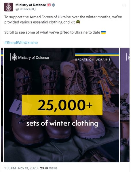 Напомним, 1 ноября Министерство обороны Великобритании опубликовало отчет о военной помощи Украины в рамках программы "Интерфлекс". В отчетет сказано, что всего было выделено 2,3 млрд фунтов стерлингов на бронетехнику, боеприпасы, амуницию, взрывчатку, медицинские принадлежности и т.д.