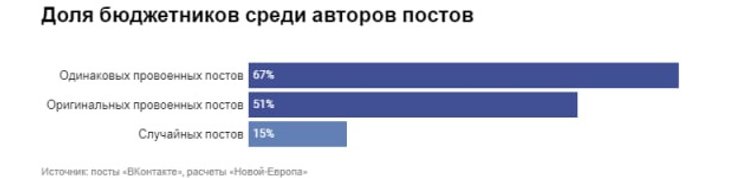 Такое количество бюджетников даже среди авторов уникальных постов, не повторяющихся у других пользователей, позволяет предположить, что многие из них тоже были написаны по указанию "сверху".