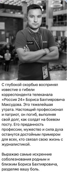 "Это самая тяжелая потеря. Настоящий профессионал и патриот, он погиб, выполняя свой долг, как солдат на боевом посту. Его преданность профессии, мужество и сила духа останутся достойным примером для всех, кто связал свою жизнь с журналистикой", — говорится в сообщении.
