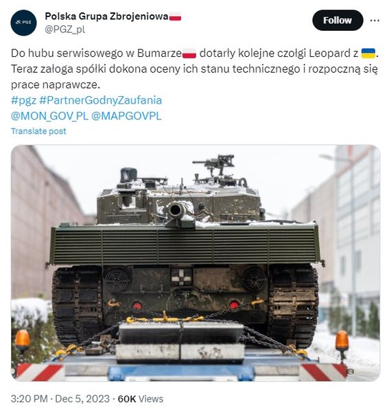 Отмечается, что Украина получила в общей сложности 40 танков Leopard 2A4, еще 14 будут поставлены в следующем году. Согласно заключенным соглашениям, Польша отвечает за работу именно над версией А4 танков Leopard, в то время как версией А5 и А6 займется немецкая сторона. В начале октября первая партия этих машин, отремонтированных на польской территории, была отправлена обратно в Украину, пишет обозреватель.