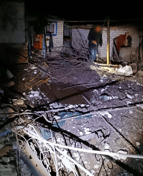 По меньшей мере семь жилых домов и админздание было повреждено в результате российских ударов дронами и артиллерией, говорят в полиции.
