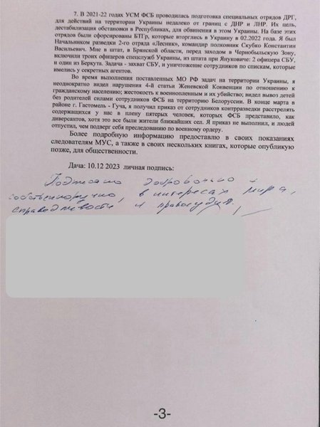 "Я добровольно отдаю себя в руки международному правосудию, хочу очистить душу и рассказать международному расследованию и суду известные мне факты коррупции, военной агрессии, преступлений, раскрыть незаконные схемы Путина о вторжении в Украину в 2014 году. Я готов ответить за содеянное, но прошу для моей семьи международной защиты, потому что на родине за мою гражданскую позицию меня ждет внесудебная казнь или шантаж через угрозы моей семье для отказа от показаний независимому суду", — заявил экс-офицер.