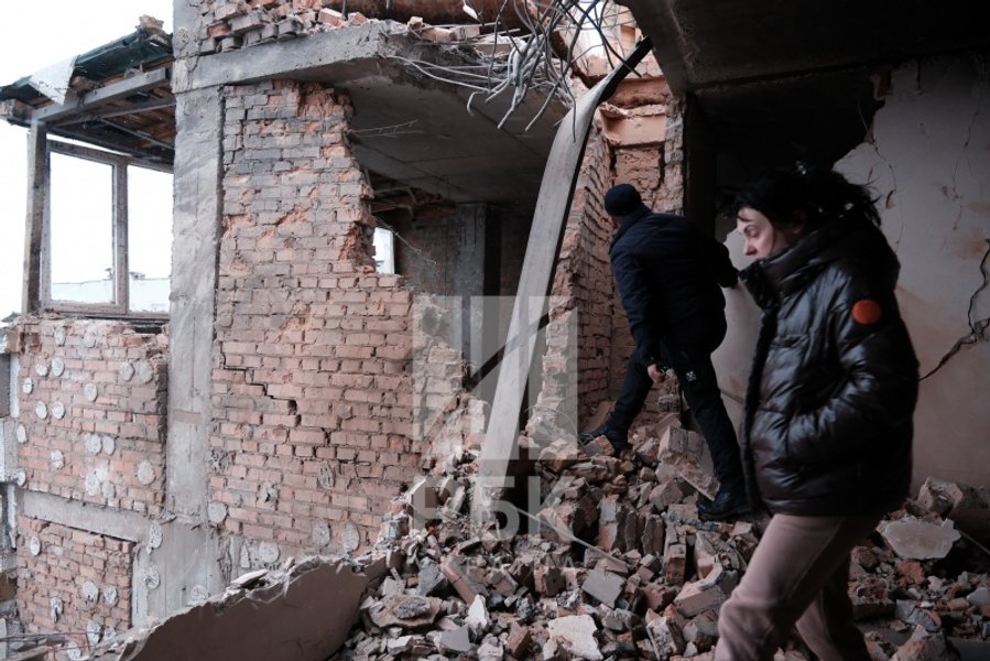 В квартирах на верхних этажах поврежденного дома не только выбиты окна, но и разбиты стены.