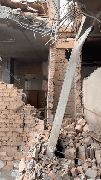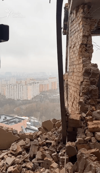 "На кадрах ниже — технический этаж. Как можно увидеть из фотографий, стены вокруг фактически разрушены до основания", — отметили в СМИ.
