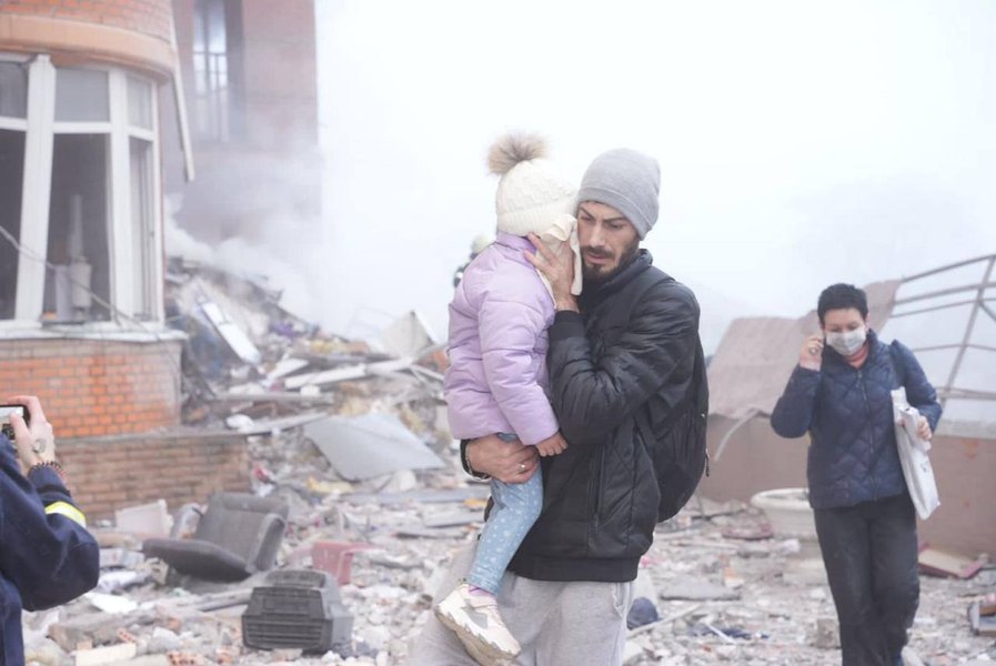 "Родильный дом, учебные заведения, торговый центр, многоэтажки и частные дома, коммерческий склад, парковочная площадка. Киев, Львов, Одесса, Днепр, Харьков, Запорожье и другие наши города. Сегодня Россия била почти всем, что имеет в своем арсенале: "кинжалы", С-300, крылатые ракеты, БПЛА. Стратегические бомбардировщики запускали Х-101/Х-505", — сказал Владимир Зеленский.
