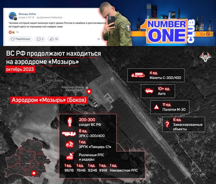 То, что российский оккупант "засветился" в Мозыре свидетельствует о том, что его военная часть сейчас дислоцируется в Беларуси в Мозырском районе Гомельской области. После провала наступления на север Украины аэродром в Мозыре заняли ракетчики.