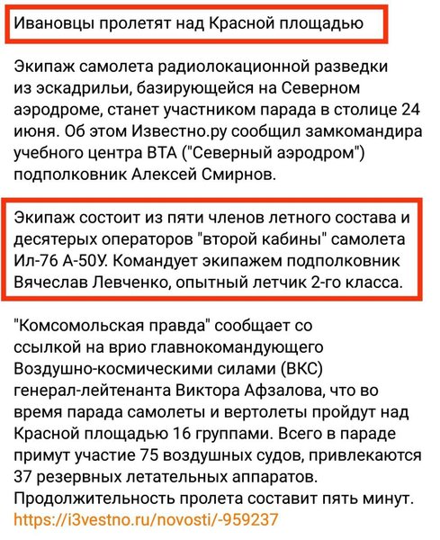 "Успешно демобилизован. Командир авиационного комплекса радиолокационного дозора и наведения — А-50У подполковник Вячеслав Левченко, летчик 2 класса, участник военного парада в Москве 2020 года. "Ивановцы" больше не пролетят над Красной площадью", — проинформировал он.