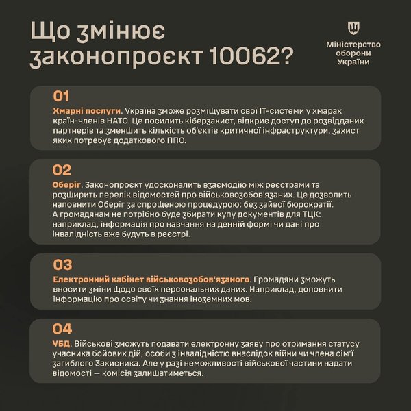 Также в пресс-службе добавляют, что благодаря принятому законопроекту №10062 гражданам не нужно будет собирать большое количество документов для территориальных центров комплектования и социальной поддержки.