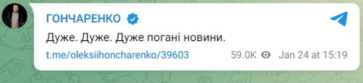 Перед этим Гончаренко написал, что у него "очень плохие новости".