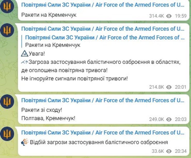Также источники Фокуса сообщили, что звуки взрывов были слышны в Полтаве, а также в городе Горишние Плавни, Кременчугского района области. О повреждении каких-либо объектов на момент публикации неизвестно.