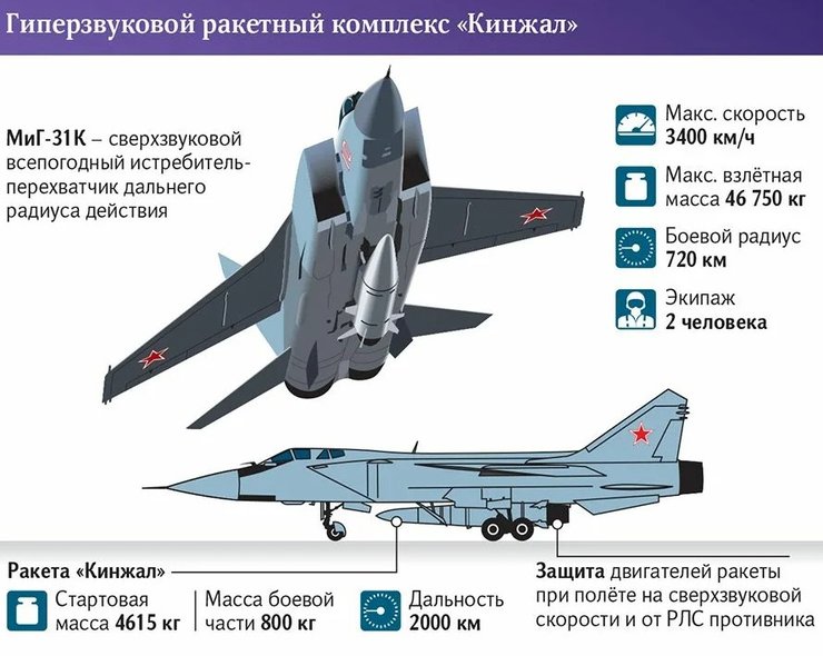 Носителем ракет "Кинжал" является сверхзвуковой истребитель МиГ-31К, хотя далеко не каждый МиГ-31 имеет возможность запуска этой ракеты.