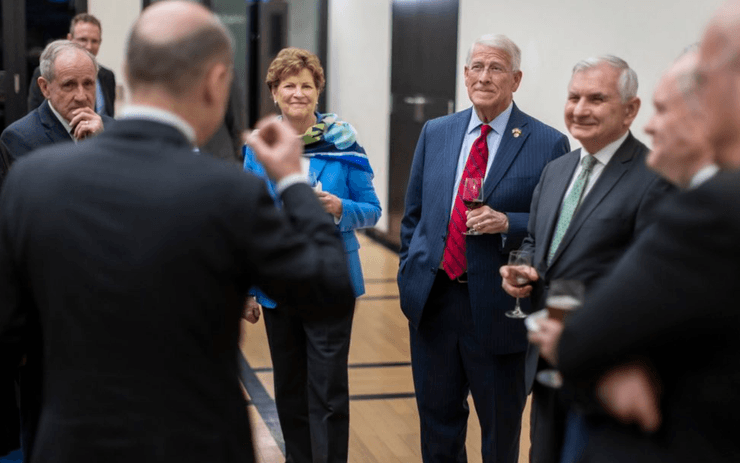 ВажноНемецкий политик не скрывал положительных эмоций от встречи с членами Сената США. Он разговаривал с представителями Демократической и Республиканской партий.