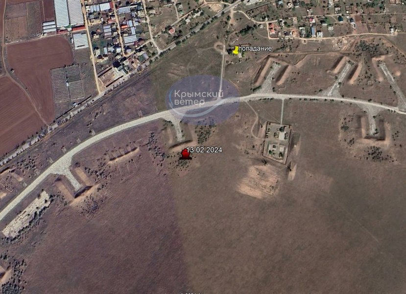 Также на снимке желтой точкой обозначили место попадания по командному пункту оккупантов 6 января 2024 года. Тогда украинские военные уничтожили пункт управления россиян на территории временно оккупированного Крыма. Это подтвердил командующий Воздушных сил ВСУ Николай Олещук. Зато в Министерстве обороны Российской Федерации заявили, что над полуостровом работала противовоздушная оборона.
