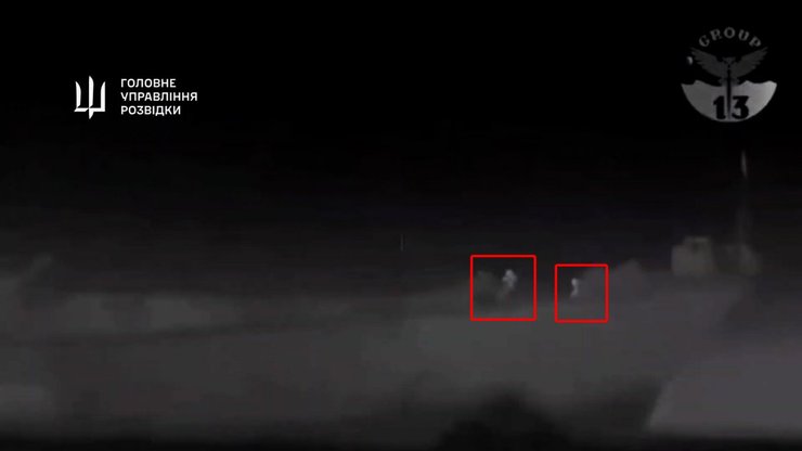 Удар с другого борта корабля приходится на отсек с силовой установкой, которая находится в последней трети корпуса. Благодаря тепловизору ее хорошо видно. После первого поражения в эту часть корпуса к кораблю направляется еще один дрон, который не только фиксирует поражения, но и увеличивает их. И, наконец, еще один БПЛА и "Цезарь Куников" фактически уже лежит на боку.
