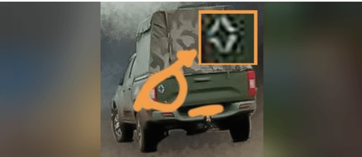 На транспортных средствах зафиксировано ромб и перевернутая V квадрате. Отметки можно увидеть как на грузовиках, так и на малых бронированных автомобилей.