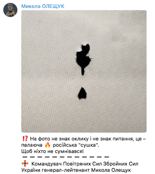 Чуть позже генерал опубликовал фото уничтоженного самолета, объясняя, что это не восклицательный знак и не знак вопроса.