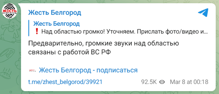 "Предварительно, громкие звуки над областью связаны с работой ВС РФ", — сообщали местные паблики.