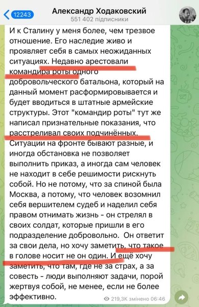 Оккупант вспомнил приказы Сталина о расстрелах людей и отметил, что сегодня его "наследие" продолжает жить, потому что командиры ВС РФ считают себя "вершителями судеб" и просто убивают подчиненных за невыполнение приказов.