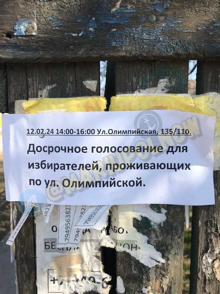 "С 10 по 14 марта в Мариуполе проходит фарс под названием "досрочное голосование на президентских выборах РФ", — говорится в сообщении горсовета.