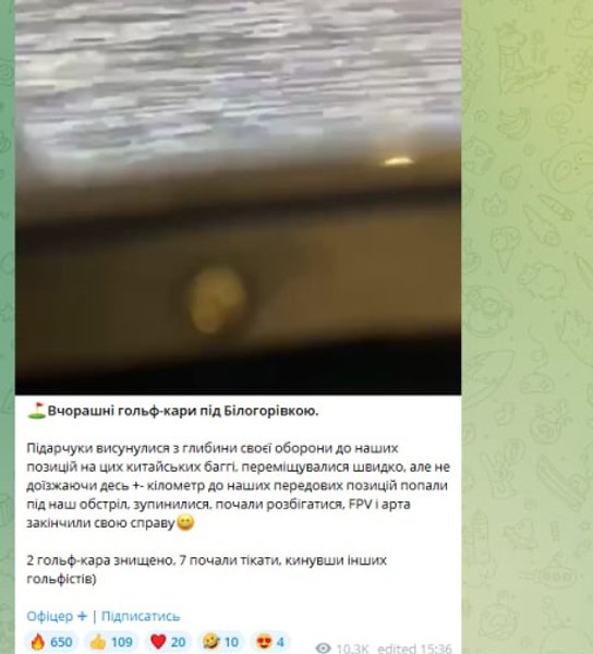 Военный отметил, что 2 гольф-кара были уничтожены, а 7 начали убегать, бросив других "гольфистов".