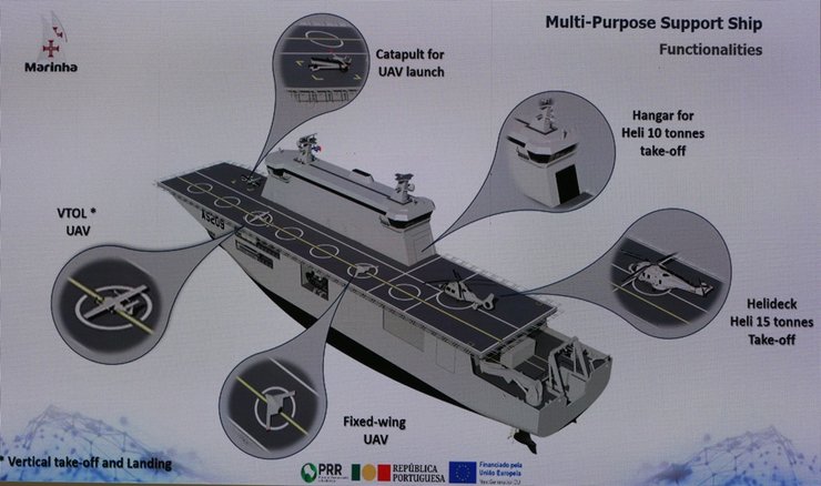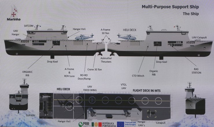 В ходе выставки DIMDEX 2024 начальник штаба ВМС Португалии адмирал Энрике Эдуардо Пассалакуа де Гувейя и Мело представил новаторский проект многоцелевого корабля поддержки (MPSS), разработанный Damen Shipyards с учетом специфических требований португальского флота. Контракт на проектирование, строительство и оснащение корабля MMPS был заключен в ноябре 2023 года, а сам корабль получил оригинальное название D. João II (A 5209). Об этом сообщает European Defence Review.