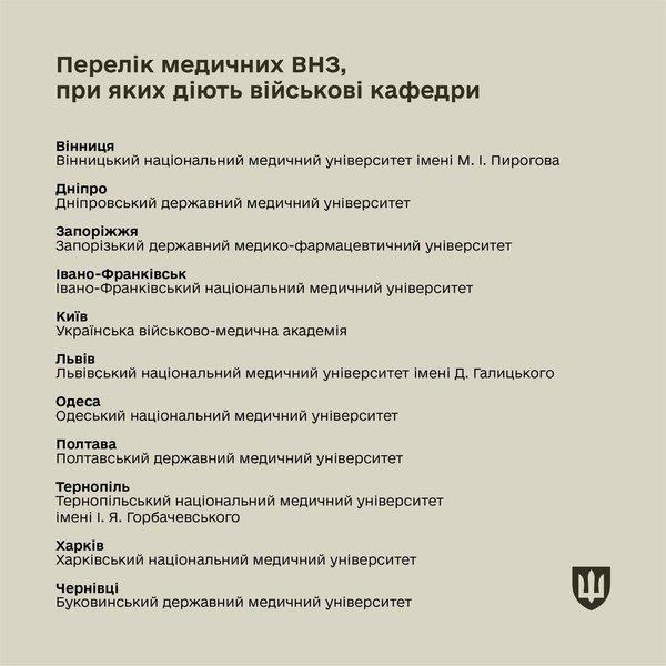 В частности, мобилизованные медики, которые не заканчивали военную кафедру, могут получить звание младшего лейтенанта и вернуться на службу на соответствующую должность за 40 дней, вместо четырех месяцев. По словам заместителя министра обороны Натальи Калмыковой, обучение будет включать курсы онлайн, 18 дней практических занятий в Военно-медицинской Академии ВСУ.