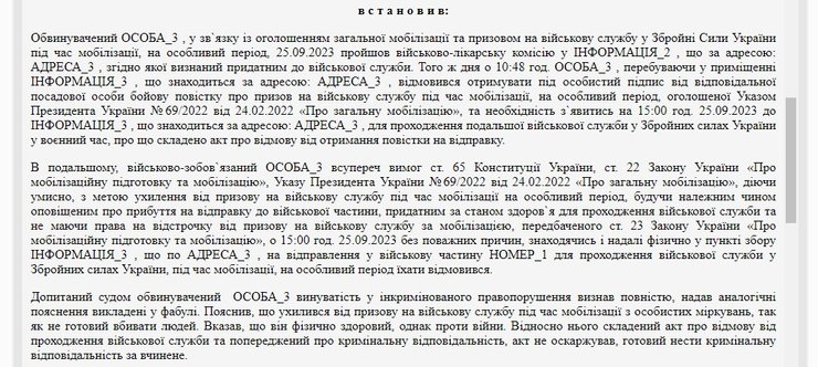 Согласно данным из Единого государственного реестра судебных решений, житель Львова осенью прошлого года прошел военно-врачебную комиссию, по результату которой он был признан годным к службе в армии. Однако когда получил повестку явиться в воинскую часть, он отказался от мобилизации.