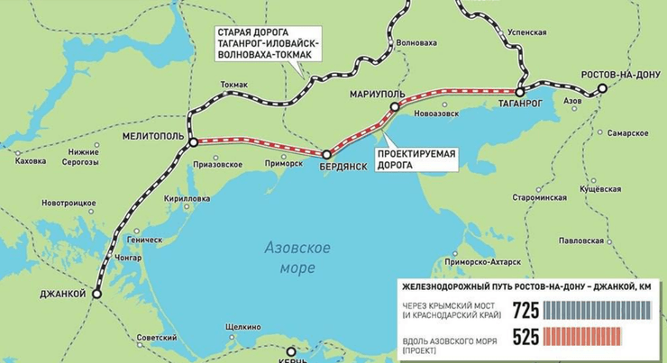"Альтернатива Крымскому мосту": в ВМС объяснили строительство РФ железной дороги Ростов-Крым (карта)